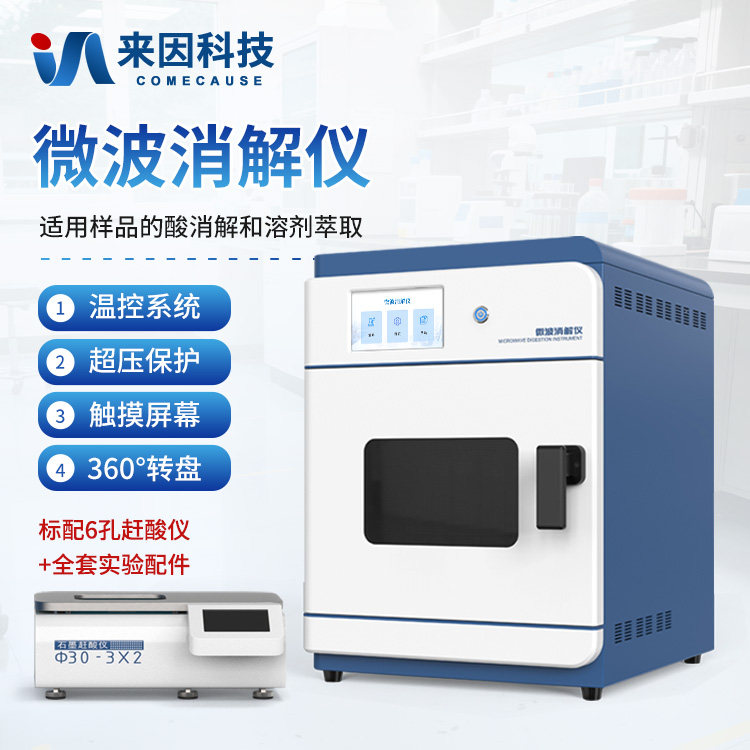 简要描述: 智能微波消解仪是一种用于样品前处理的设备,通过微波加热技术对样品进行快速、有效的消解。该仪器广泛应用于食品、环境保护、疾病控制、质量监督、商品检验、科研院所等领域,特别适用于各种样品的酸消解和溶剂萃取。